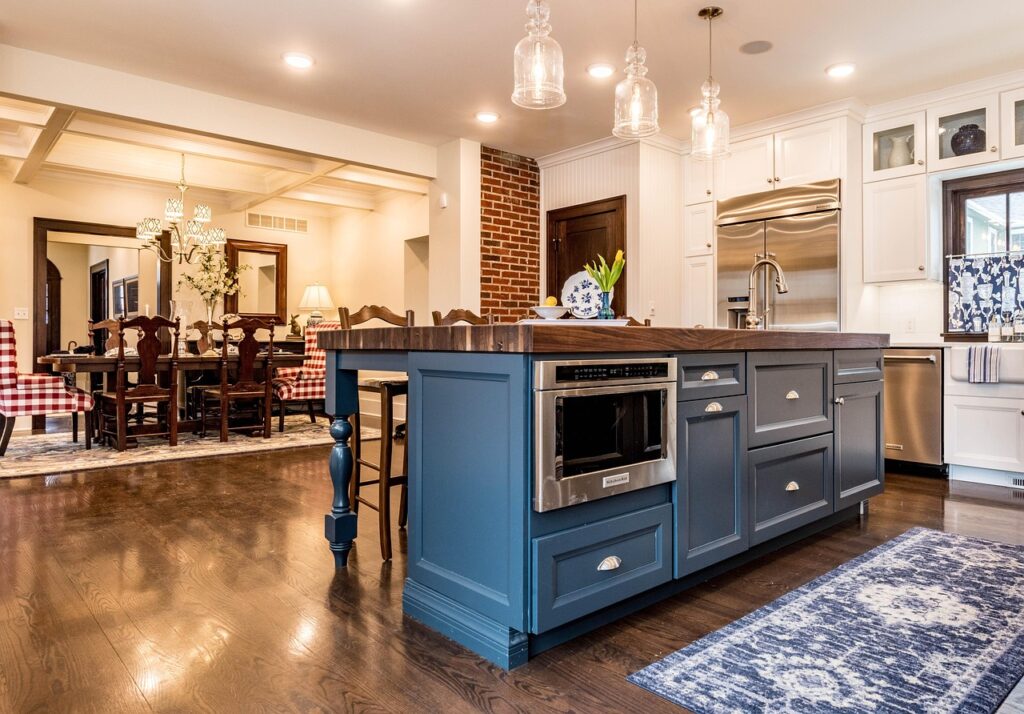 A bold-colored island can serve as a focal point, adding personality to your kitchen.