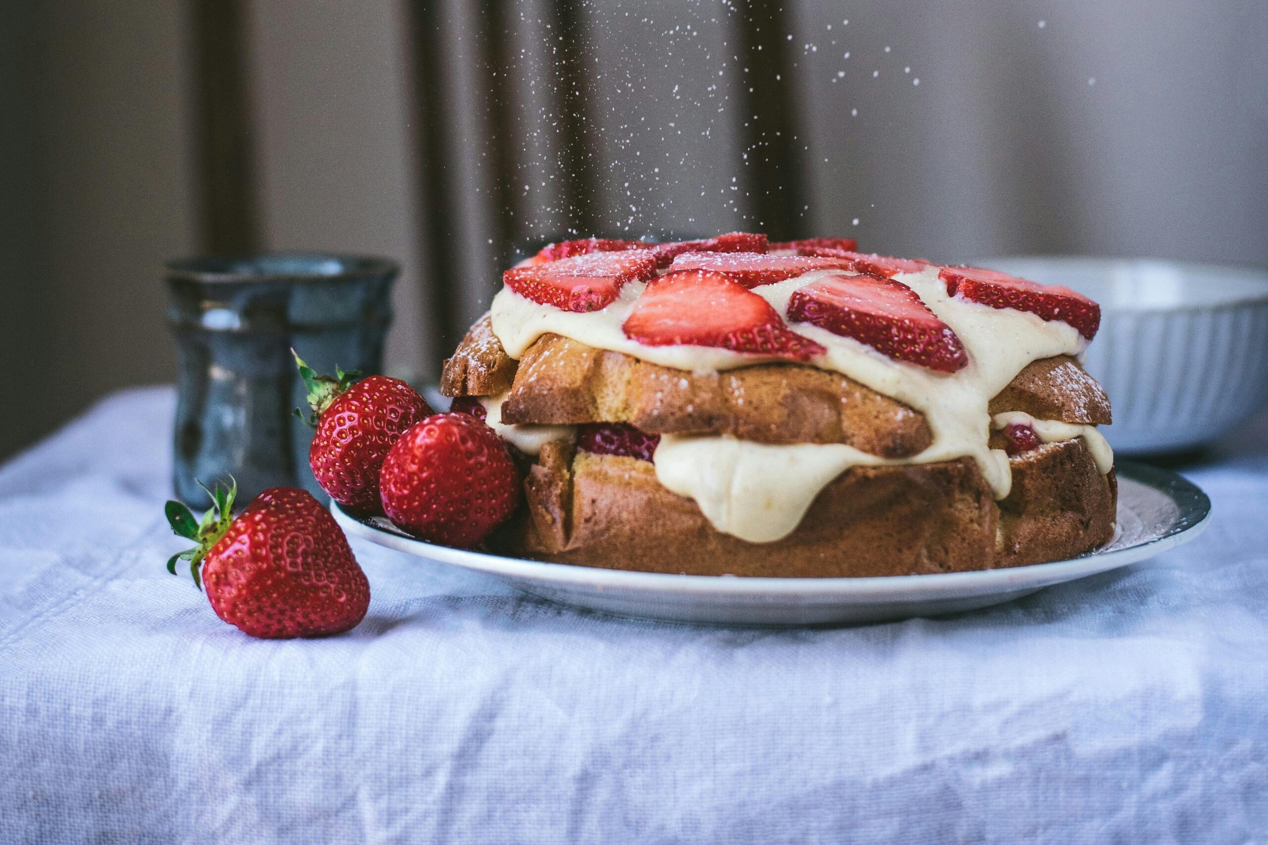 - Ingredients: Fresh strawberries, sugar, all-purpose flour, baking powder, salt, heavy cream, and vanilla extract.
