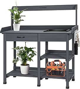 - Organization: With dedicated spaces for tools and supplies, a potting bench helps keep everything in its place, reducing clutter and making gardening tasks more efficient.